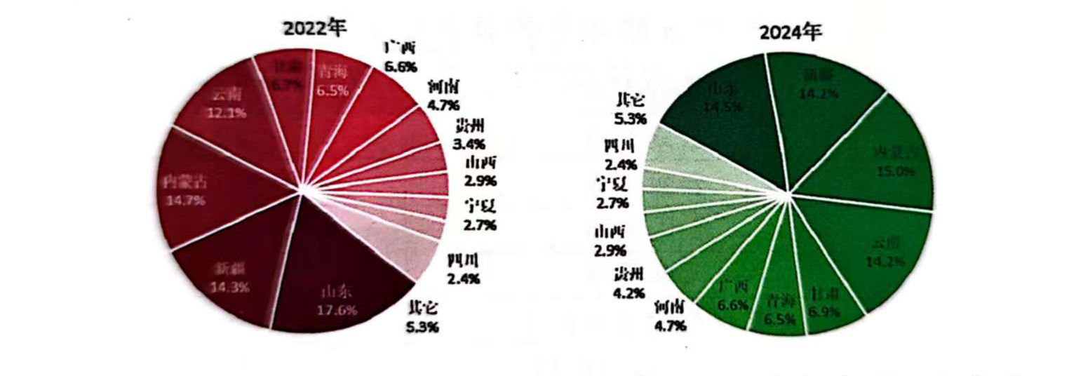 圖2-3 2023年和2024年中國電解鋁產(chǎn)能分布