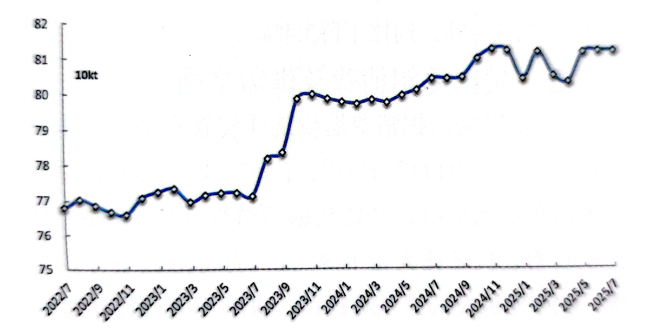 經(jīng)調(diào)整,7月份產(chǎn)量為376.4萬噸;預(yù)計(jì)8月份產(chǎn)量為376.5萬噸,同比增長1.2%,環(huán)比基本持平。