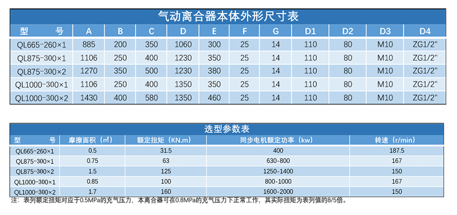 氣動離合器常用型號:
